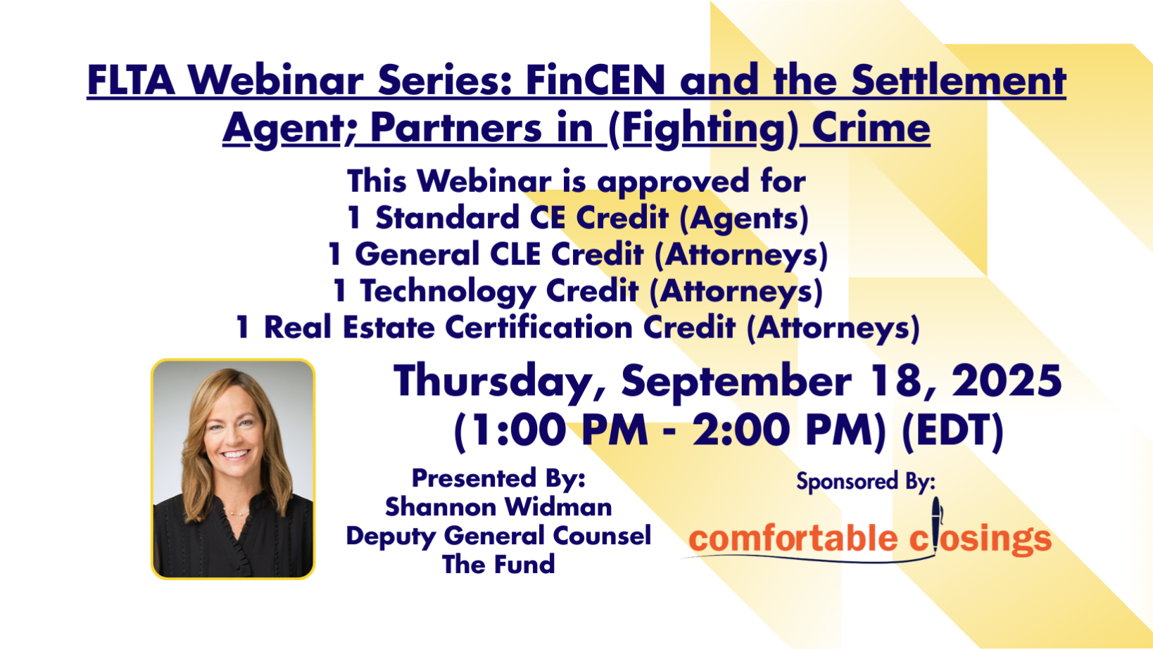 FLTA Webinar Series: FinCEN and the Settlement Agent; Partners in (Fighting) Crime (CE/CLE Credit)