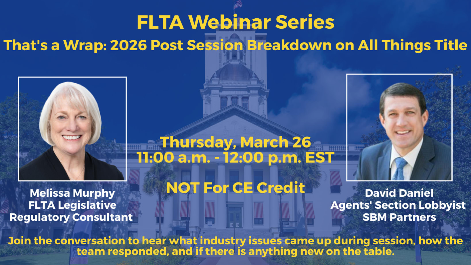 A conversation with Agents' Section Lobbyist, David Daniel, SBM Partners, and FLTA Legislative Regulatory Consultant, Melissa Murphy.